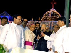 Later the governor started the decorated car which carried the statue of Infant Jesus in a procession. Thousands of people thronged to the place. Governor Dr Hans Raj Bhardwaj, Archbishop of Bangalore Most. Rev. Bernard Moras, special guest commissioner of police Shankar Bidari and local MLAs Harris, Derek and Ramalinga reddy, among others were present. flag-hoisting ceremony marks the nine days of novena, an institutional act of devotion in the Roman Catholic Church. In this period, there are regular prayers in various local languages and the festival concludes with the feast.